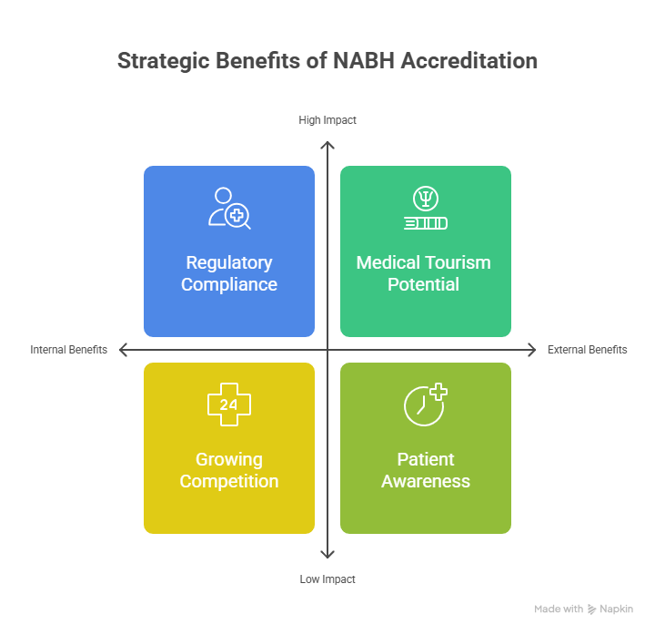 - Growing Competition: NABH accreditation differentiates hospitals by showcasing superior quality and safety.